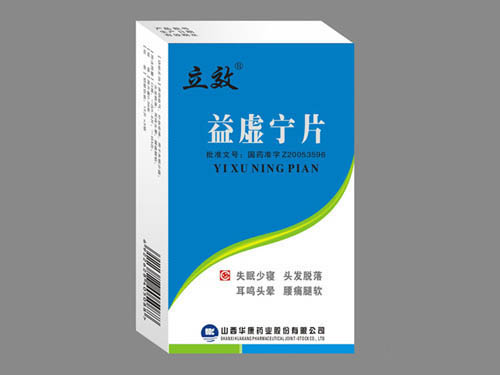 【药品名称】 通用名称:益虚宁片 汉语拼音:Yi Xu Ning Pian 【成份】枸杞子、制何首乌、地黄、女贞子、当归、麦冬、党参、菟丝子、牛膝、五味子、牡丹皮、甘草。 【性状】本品为糖衣片,除去糖衣后显深棕色;味甜。 【功能主治】养阴益气,补血安神。用于失眠少寝,头发脱落,耳鸣头晕,腰痛腿软。 【规格】每片0.35克 【用法用量】口服,一次5~6片,一日3次。 【注意事项】 1.忌油腻食物。 2.孕妇慎用。 3.外感或实热内盛者不宜服用。 4.按照用法用量服用,小儿应在医师指导下服用。 5.长期连续服用应向医师或药师咨询。 6.对本品过敏者禁用,过敏体质者慎用。 7.本品性状发生改变时禁止使用。 8.儿童必须在成人监护下使用。 9.请将本品放在儿童不能接触的地方。 10.如正在使用其他药品,使用本品前请咨询医师或药师。 【药物相互作用】如与其他药物同时使用可能会发生药物相互作用,详情请咨询医师或药师。 【批准文号】国药准字Z20053596 【生产企业】山西华康药业股份有限公司